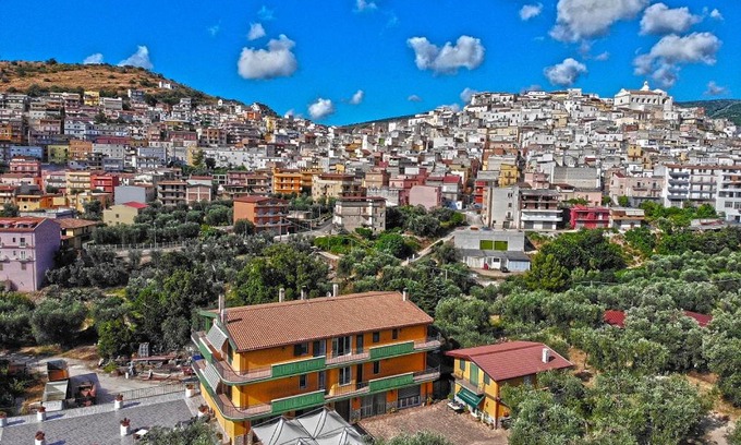 Featuring a children's playground and room service, Agriturismo L'Oasi is situated conveniently in Carpino, 12 km from Cagnano Varano and 13 km from Ischitella. There is an on-site restaurant, plus free private parking and free WiFi are available. The apartment is fitted with 2 bedrooms, 1 bathroom, bed linen, towels, a flat-screen TV with satellite channels, a fully equipped kitchen, and a balcony with lake views. The apartment offers a buffet or Italian breakfast. A terrace is available for guests at Agriturismo L'Oasi to use. Foce Varano is 15 km from the accommodation, while Rodi Garganico is 15 km away. The nearest airport is Foggia "Gino Lisa" Airport, 83 km from Agriturismo L'Oasi.