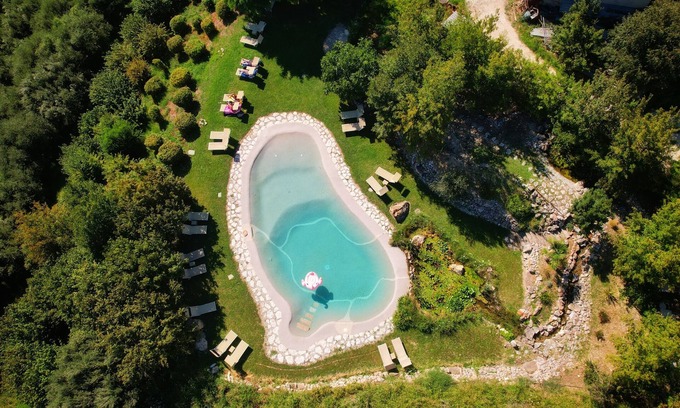 Recreational amenities at the farm stay include a seasonal outdoor pool.