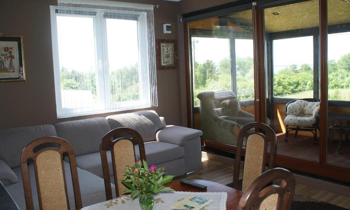 Agrodomki Okej -Dom Koko is located in Gardna Wielka, just 8.9 miles from Słowiński National Park and 30 miles from Leba Railway Station. Providing a family-friendly restaurant, the property also has a garden and barbecue facilities. Teutonic Castle in Lębork is 30 miles away and Baltic Gallery of Modern Art is 14 miles from the vacation home. Featuring a terrace and lake views, the vacation home includes 1 bedroom, a living room, flat-screen TV, an equipped kitchen, and 1 bathroom with a shower. Guests can enjoy a meal on an outdoor dining area while overlooking the garden views. The accommodation is non-smoking. For guests with children, the vacation home features indoor and outdoor play areas. Guests can also warm up near the outdoor fireplace after a day of cycling. Ustka Promenade is 16 miles from Agrodomki Okej -Dom Koko, while Ustka Lighthouse is 16 miles from the property. Gdańsk Lech Wałęsa Airport is 71 miles away.