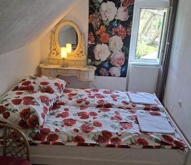 BathroomShower, Toilet paper, Walk-in shower, Towels, Toilet, Shared toilet, Guest bathroom, Bathtub or shower, Private BathroomMedia & TechnologyFlat-screen TV, Satellite channels, TVGeneralIroning facilities, Iron, Hardwood or parquet floors, Heating, Interconnecting room(s) available, Hypoallergenic, Trash cans, Key access, Private entranceKitchenStovetop, Oven, Kitchenware, Cleaning products, Dining table, Refrigerator, Electric kettle, Coffee machine, Toaster, KitchenViewView, Garden view, Mountain view, Quiet street viewLiving AreaDining areaBedroomLinens, Wardrobe or closetOutdoorsOutdoor furniture, Outdoor dining area, BarbecueAccessibilityUpper floors accessible by stairs onlyRoom AmenitiesNon-feather pillow, Socket near the bed, Clothes rack, Sofa bedEntertainment & Family ServicesBoard games/puzzlesSafety featuresAir purifiersCleanliness & disinfectionHand sanitizer |