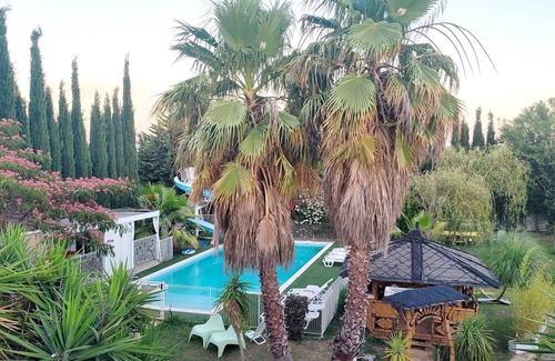 Air-conditioned 2-bedroom chalet with pool, slide, garden, games is located in Milhaud. Air-conditioned 2-bedroom chalet with pool, slide, garden, games provides accommodation, featuring Designated Smoking Area, Bedding/Linens, Wellness Facilities, among other amenities. This Ski Chalet features Designated Smoking Area, Bedding/Linens, Wellness Facilities, to make your stay a comfortable one.