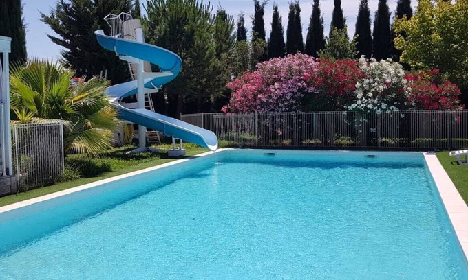 Air-conditioned 2-bedroom chalet with pool, slide, garden, games. | Ski Chalet in Nîmes