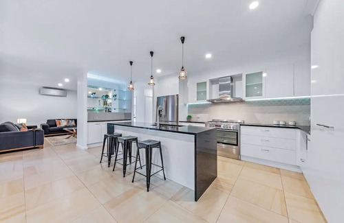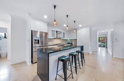 Indulge in serenity with your family or friends at this recently constructed tranquil abode, conveniently situated just a stone's throw away from the bustling Main Street of Airlie Beach. A mere 2km from the Airlie Port, granting you easy access to boat excursions to the region's premier island attractions. This property boasts a capacious entertainment area with delightful mountain vistas, featuring four spacious bedrooms and an open-plan kitchen, living, and dining space—ideal for accommodating 1-8 guests.
