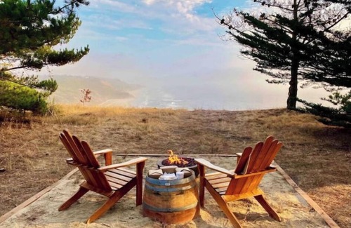 On 9 private acres overlooking the stunning Tunitas Beach and Pacific ocean from a breathtaking cliff top view. Stunning sunrises and sunset greet you in this fully equipped new 2022 Airstream. Fully loaded with all the amenities to make your glamping experience perfect. Fire pit, outside BBQ, outside griddle, A/C and fully stocked kitchen. Comes will full bathroom with shower. Truly a rare experience and located within 10 mins of Half Moon Bay shopping. Beach access short walk or drive.