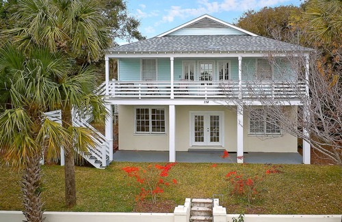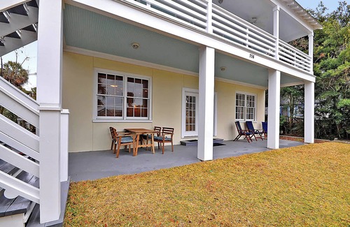 This 2-bedroom, 2.5 bath lower-level unit of a two-story house combines Folly Beach charm with a modern sensibility. The house was built in the 1930s, but has been renovated to add all of the modern conveniences and a contemporary decor.