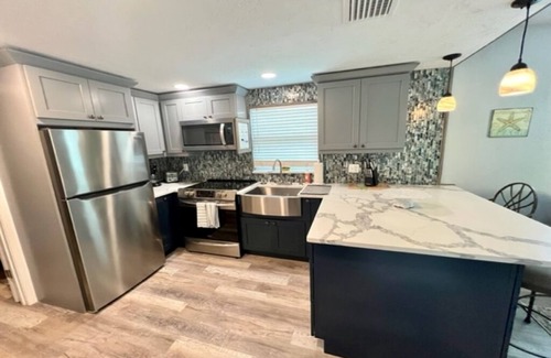Welcome to beautiful Ozona, Florida. Gulf of Mexico just steps away! Walk/ bike to local Seafood & Bars in Ozona or on the near by Pinellas trail. Newly renovated custom kitchen, bathroom, living room and bedroom with new mattress. Approx. 5 miles to lively Downtown Dunedin, 3 miles to Honeymoon Island and 10 miles to Clearwater Beach! Relax in this unique and tranquil Florida home. this unit is on the ground floor of a triplex. A bright, clean and airy home away from home getaway!l