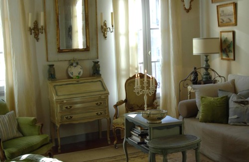 The apartment is Sunny and bright with lots of windows and the desired southern exposure, the living room is furnished with French flea markets antiques and decorative arts. The apt is in a Provencal 18th century style and includes a formal eating area as well as daybed, comfortable lounge chairs and a secretaire for writing post cards or keeping your journal. There is a flat screen TV with cable and international channels to add a modern touch in front of 17th century fireplace. An instruction book is provided to you upon your arrival with local restaurant recommendations and places to visit.