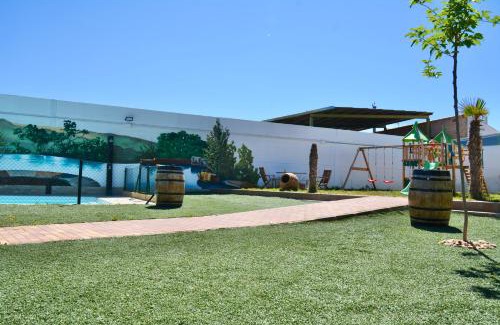 ALAMANCHA in Casas de los Pinos provides accommodations with an open-air bath, a garden, and barbecue facilities. Guests can enjoy access to a picnic area and to a year-round outdoor pool. The vacation home offers quiet street views, a children's playground, a 24-hour front desk, and free Wifi is available throughout the property. Offering a terrace or patio with views of the pool and garden, the units feature air conditioning, a seating area, cable flat-screen TV, and kitchen. A microwave, a toaster, and fridge are also featured, as well as a coffee machine. At the vacation home, the units are fitted with bed linen and towels. Sightseeing tours are available in the surrounding area. Albacete Airport is 48 miles away.