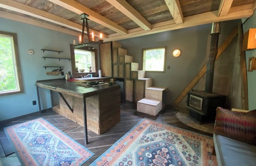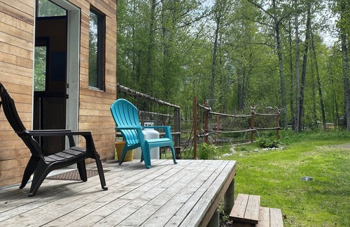 You'll have access to firewood, a wood smoker and fire pit. The quant home has a nest like queen bed snuggled among the trees. Full kitchen and dining area. Feel at home, Alaska style.