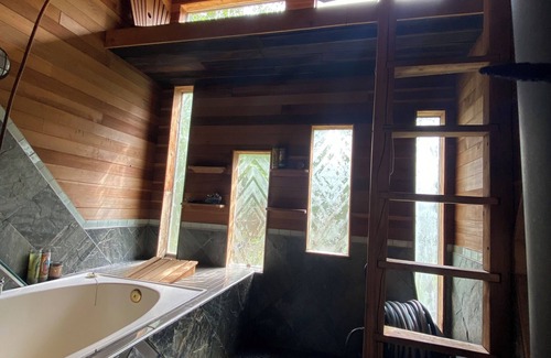 You'll have 1.5 acres to yourself, nestled in the heart of Sutton-Alpine. Our bath house is a retreat with soaking bathtub & waterfall shower in a sauna, as well as W/D and a utility sink. Did I mention it's located in a garden?