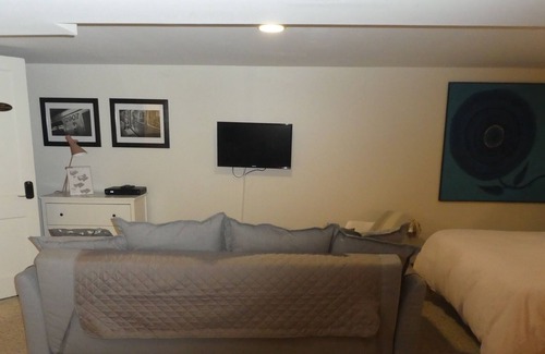 This 400-square-foot basement studio apartment offers complete privacy, accessible via a separate keypad entry. It comes fully furnished with all the essentials you need for a peaceful and relaxing stay.
