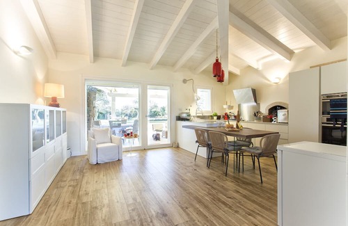 As the name of the villa suggests, in this house the predominant color is pristine and surprising white, which distinguishes well-furnished and spacious rooms and large windows overlooking a scenario of quiet and relaxation.