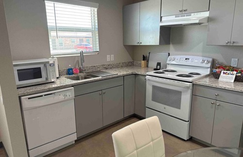 Welcome to our stylish 2-bed, 2-bath apartment! Enjoy modern decor, a fully equipped kitchen, comfy bedrooms with private baths, and a dedicated workspace . Prime location with amenities nearby. This apartment even comes with the convenience of an in-unit washer and dryer. High Speed Wi-Fi for all your technology needs so you wont miss a beat, On site easy access parking. Make your next stay a memorable one!
