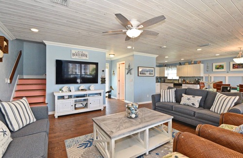 "GORGEOUS, RENOVATED AND SPACIOUS TOWN HOME. ONE MINUTE WALK TO BEACH with YOUR OWN 2 CAR GARAGE AND 6 ADDITIONAL SPACES IN DRIVEWAY! Completely stocked for ALL your needs! Once you're inside, let the fun begin with the game room w/ stand up arcade machine and foosball table. 2 LARGE MASTER SUITES and laundry room on third floor. Two Queen sofa beds and Brand new SMART T.V'S in every room. Take to one of the two large decks to enjoy a home cooked meal, favorite beverage and views of the ocean. PERFECT VACATION OASIS!" Ring doorbell with video/audio at front door for extra security.We welcome one dog for the $165 pet fee, so please make sure you hit the pet button when booking . If you have a second dog, that will need be approved and a second fee applied.