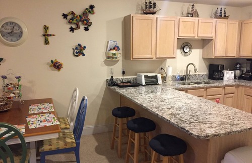 The living room is equipped with a 39” flat screen, Brand new Blue Ray/DVD player, Nintendo Wii with 2 controllers, WiFi internet, Digital phone service with free nationwide long distance, and Digital cable HDTV service.