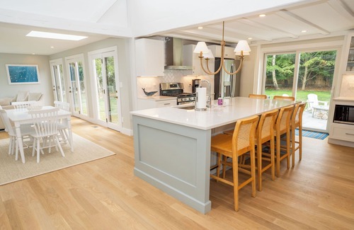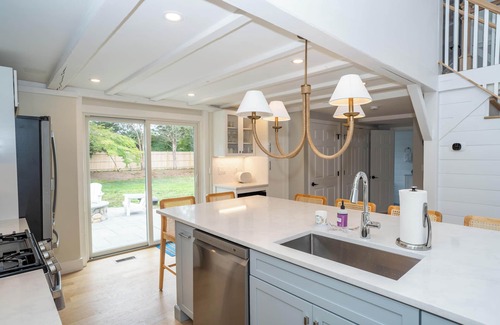 Spacious, newly renovated home off Shore Rd. Steps to Chatham Bars Inn, Fish Pier, Cow Yard Beach, Veterans Field, and downtown. Features new furniture, large open living space, brand new floors, kitchen, baths, AC, patio, outdoor shower, SONOS inside and out, laundry, and ample parking. Your family will be close to everything when you stay at this centrally-located retreat.