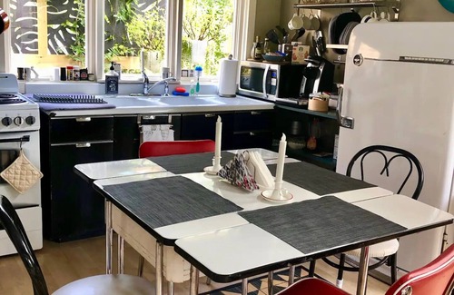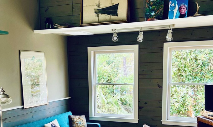 The Quiet Carriage house was crafted from reclaimed and repurposed materials. When staying at the Carriage House, the beach and Wilmingtons' attractions are yours for the taking. If you are boycotting another short term rental platform, the host sympathizes and offers a rental option here on VRBO. Guests often remark that it is like living in a tranquil treehouse. The high ceiling, artistic quirkiness and natural light are complimented by the mild and generous Carolina Blue Skies. A guest hot tub and fire pit enhance the gentle cooler months and the beach and Downtown Riverwalk are just a short drive away. The ever blooming and expanding garden is open for enjoyment and herbs are there for the picking. Wilmington offers excellent dining experiences. Outdoor adventures, both on land and water, abound and the local Ghost Tour's focus on so much local history while digging up the past! Historic sites, leisurely neighborhood walks, bird watching, farmers market, local coffee shops, brewery's and lots of place to shop and visit, provide entertainment and quality of life. Wilmington is perfect all year round. Inclement weather is very rare. The Carriage House is located in the Princess Place Neighborhood, next to Burnt Mill Creek -a bird watchers paradise. It is 1.5 miles to Downtown Wilmington and the Riverwalk and 7 miles to the Beach. Snowbirds and travel nomads know that Wilmington is wonderful year round. The Carriage house is perfect for business travelers and has high speed internet and is in close to the airport ILM (2 miles), which offers direct flights 10+ major cities and is serviced by several major airlines including American, United and Delta.