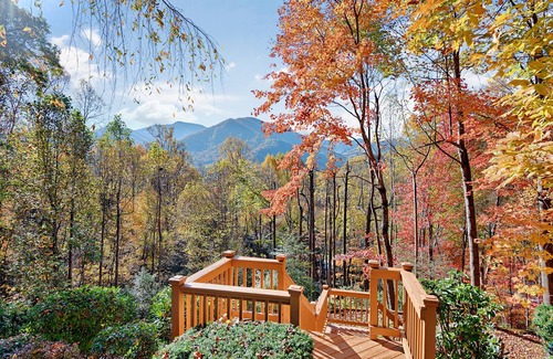 Our beautiful three-story log cabin is located in the lovely community of Valley Creek Run which is located one block off soco road behind Bearwaters brewery. You enter the community driving over the serenity of Jonathan Creek bridge then up the short hill you will turn to the left to our cabin located at the end of a cul-de-sac . When you arrive, you’ll find your favorite spot out on the deck to soak in the gorgeous mountain views of Maggie Valley Smokey Mountains from this quaint hillside location. Our cabin is also close to Cataloochee Ski mountain & walking to Tube World for winter fun!