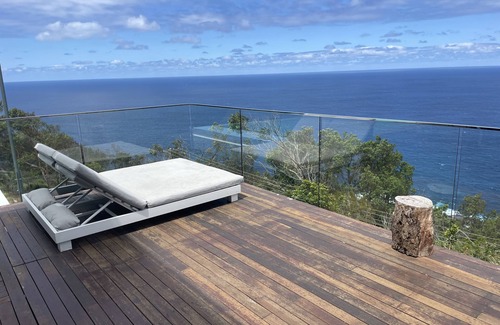 It boasts direct ocean views from most of the rooms and living areas or bush views from the rest or both.