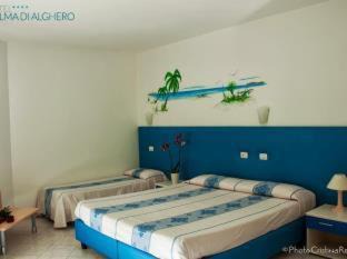 Alma di Alghero Hotel is located a few steps from Lido di San Giovanni beach, a 15-minute walk from the historic center, and a 10-minute drive from the airport. The rooftop terrace features a swimming pool with hydromassage. Modernly decorated, all rooms at the Alma di Alghero feature air conditioning and a satellite TV. Some rooms offer views of the Mediterranean Sea. A varied breakfast is served until 11:00. This modern and functional building features on-site parking and a 24-hour front desk. There is free Wi-Fi throughout the hotel.