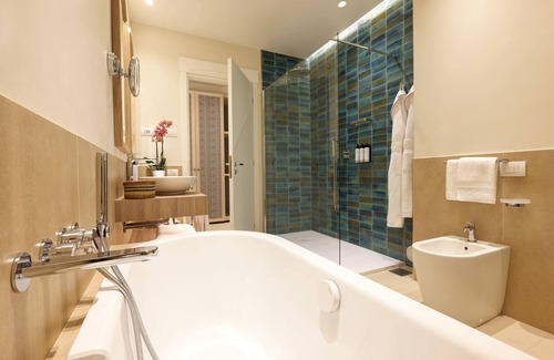 Bathrooms include separate bathtubs and showers with rainfall showerheads, bathrobes, slippers, and designer toiletries. Business-friendly amenities include desks, safes, and phones. Additionally, rooms include complimentary bottled water and coffee/tea makers. Hypo-allergenic bedding, change of towels, and change of bedsheets can be requested. A nightly turndown service is provided and housekeeping is offered daily. Renovation of all guestrooms was completed in May 2024.