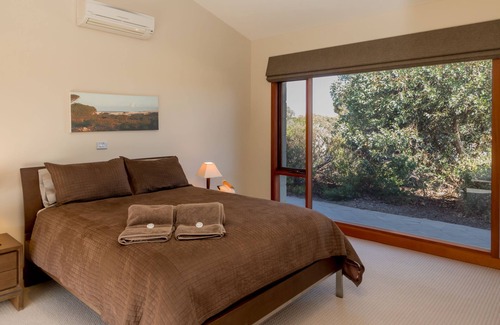 A spacious open plan living area with the extensive use of glass provides magnificent 180 degree views over Coffin Bay and the surrounding waterways.