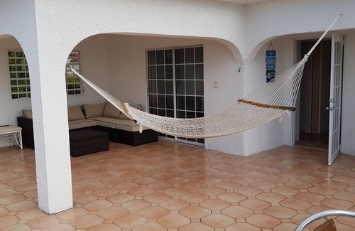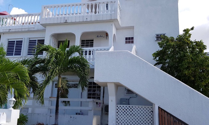 1st & 2nd level penthouse with astonishing large terrace with sea views right in the heart of Maho's entertainment area. The Aloha penthouse is located in a small secured residential neighborhood behind the Casino Royal. Walking distance from night life, restaurants, shops, supermarket, Mullet bay beach - golf club and the famous Maho beach where you can watch and feel planes take off and land...