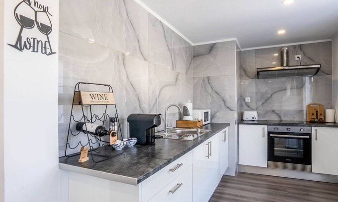 Kitchen: Fully equipped kitchen with an oven, stove, and washing machine, perfect for whipping up delicious meals and handling laundry needs with ease.