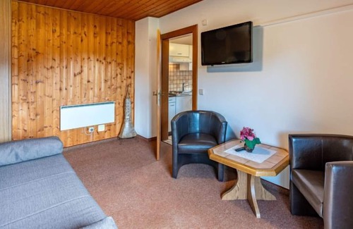 "Wohnung Nr. 3 oder 4", 2-room apartment 42 to 48 m2 on 2nd floor. Cosy furnishings: living/sleeping room with 1 double sofabed and satellite TV. 1 double bedroom. Small kitchen-/living room (2 hot plates, toaster, kettle, electric coffee machine) with dining table. Shower/WC. Heating. Carpet. Balcony, south facing position. Facilities: children's high chair, baby cot. Internet (WiFi, free). Please note: non-smokers only. Maximum 1 small pet/ dog allowed.