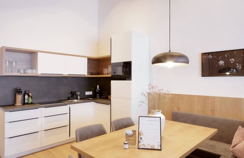 • Well equipped kitchenette with microwave, coffeemachine and dishwasher