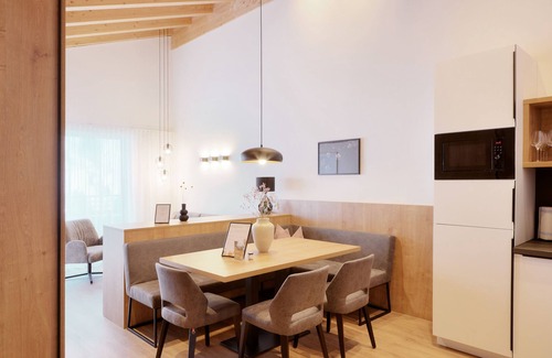 The cosy living area offers plenty of space for sociable dinners, as well as for relaxing hours with family or friends. There is enough storage space in the apartments, the Alpenstolz Damüls has a separate ski storage room and bicycle room. The Oberdamüls ski lift and the village centre with its grocery and sports shop are within walking distance of the property - the best prerequisites for your relaxing holiday in the mountains.