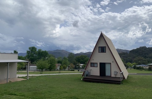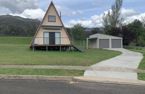 Quaint A-frame house situated in a quiet Alpine town. Great views of the snowy mountains with many local attractions. Fishing, boating, hiking, swimming, golf. Ski slopes 90 mins away. Full bathroom, loft with 2 single beds. Kitchenette and decks to take in the beautiful views. Please note that stairs to the loft are steep and might not be suitable for small children or the elderly.