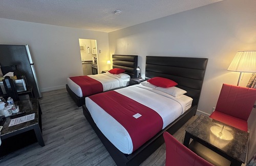 Alpine Motel offers 41 air-conditioned accommodations with complimentary bottled water and coffee/tea makers. Beds feature premium bedding. Kitchenettes offer full-sized refrigerators/freezers, microwaves, and cookware/dishes/utensils. Bathrooms include bathtubs or showers with rainfall showerheads, complimentary toiletries, hair dryers, and toothbrushes and toothpaste.
