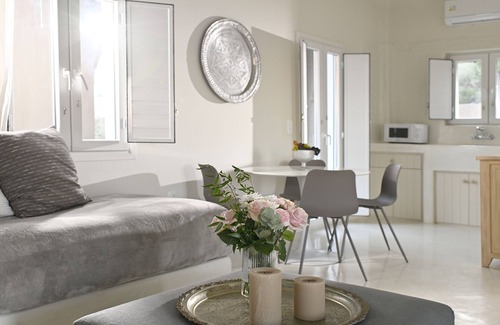 Altura Residence is located in Exo Gonia of Santorini island. Features a comfy bedroom with double bed, bathroom, living room and fully equipped kitchen. In the living room the sofa is extended as double bed. In the balcony you will find an outdoor jacuzzi for unforgettable moments.