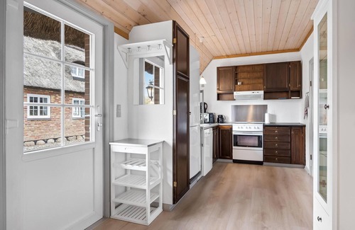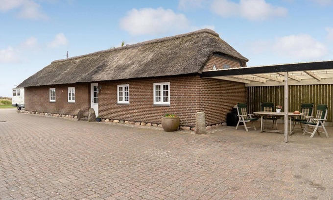 You can also enjoy a game of cards or your vacation meals on the covered terrace. Sweep your gaze across the rooftops of the village to the waters of Ringkøbing Fjord. Your children can play soccer or badminton and have fun in the paved yard.