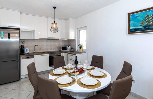 This domicile is located in the small village of Komarna in southern Dalmatia, which will offer you tranquility and cozy bays. Here you can escape the crowds and enjoy the wide deep blue sea, which is only about 200 meters away from your accommodation. Relax in this picturesque natural scenario, with pine forests, rivers, the sea, pebble beaches and gigantic rocky bays. The surroundings of Komarna also have a lot more to offer, including historical monuments, among others the archaeological museum Narona, the ornithological collection and Norsika Castle in Metkovic. You can also visit the surrounding towns, such as Dubrovnik, where you can walk through the old streets and visit sights such as the city walls, the city port and the cathedral.