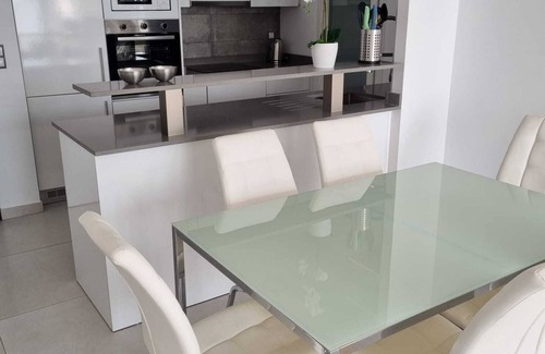 Infinity View is an incredible landmark in Arenales del Sol and very close to Gran Alacant. Alicante City is only 15 minutes/10 km away by car or bus. The apartment has 2 bathrooms, a fully equipped kitchen and a large terrace that directly overlooks the sea and the beach and the city of Alicante.