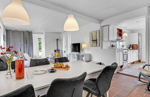 Close to the gentle Danish Baltic coast, you will find this tastefully furnished Scandinavian-style vacation home in a quiet environment. The heart of the house is the spacious living room with open kitchen. Spend many hours playing board games in its relaxed atmosphere or make yourself comfortable in the armchair with your vacation reading and a tea.