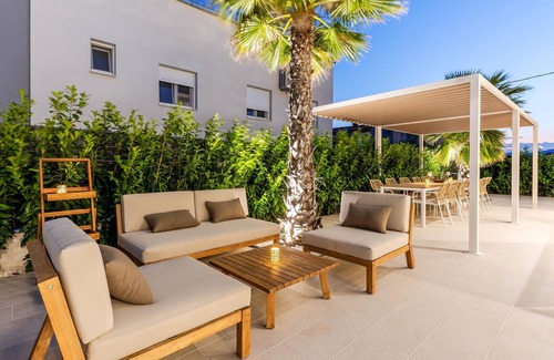 Travel to Kastel Stari and spend your holiday in this beautiful house, which not only offers you high-quality furniture on two floors, but also a stylish and bright design that invites you to relax and enjoy. This fantastic house leaves nothing to be desired. Enjoy the wonderful ambience inside with a fireplace and follow your daily sports programme in the fitness room.