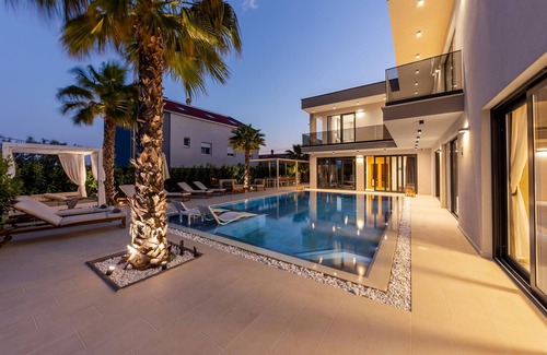 Enjoy your holiday in this luxury home with heated pool, an oasis with sea views.