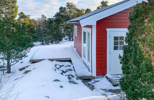 Enjoy a wonderful vacation for two in this inviting vacation cottage in an elevated position near the lake.