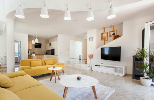 Family villa on the island of Murter for a relaxing holiday on the Adriatic - this is the easiest way to present the beauty of this idyllic island - only 200 m from the first beach. Your host will be at your service to assist you with all the little details of your holiday so that you can concentrate on enjoying and relaxing. Furnished and decorated with love, you will have 4 bedrooms at your disposal: one on the ground floor with its own bathroom, living room, kitchen and dining area. The remaining 3 bedrooms are located on the first floor, where you also have your own gym with exercise equipment and table football. If you want to unwind after sunbathing or exercising, you can choose between a shower or a bathtub with hydromassage element.