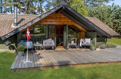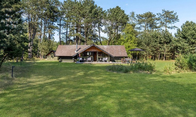 The house welcomes you on an attractive property surrounded by trees and near a good swimming beach, making it ideal for a relaxing getaway. In the cozy rooms you can relax with the whole family in a rustic ambience. Cook together here in peace and enjoy meals with a beautiful view of the outdoors, which allows you to experience the closeness to nature in the best possible way. After an active day, make yourself comfortable in the living area, put your feet up, stoke a fire in the decorative fireplace and chat comfortably for a long time.