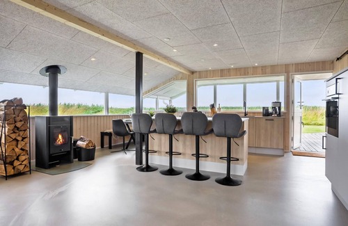 Welcome to this comfortable holiday home by the fjord, where you always have the water in front of you during your activities. Make yourself comfortable in the modern furnished rooms after your excursions, the spacious sofa invites you to relax after an eventful day. Create a particularly cosy atmosphere with a fire in the wood-burning stove and enjoy the great view in the bright rooms.