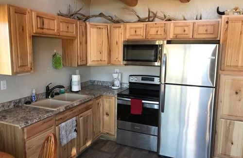 Beautiful cabin in the Big Horn Mountains surrounded by national forest. Two bedrooms and a large loft with three beds. Full size kitchen, bath and shower with lots of hot water, and laundry. Rustic decor and wood burning fireplace create a cozy
