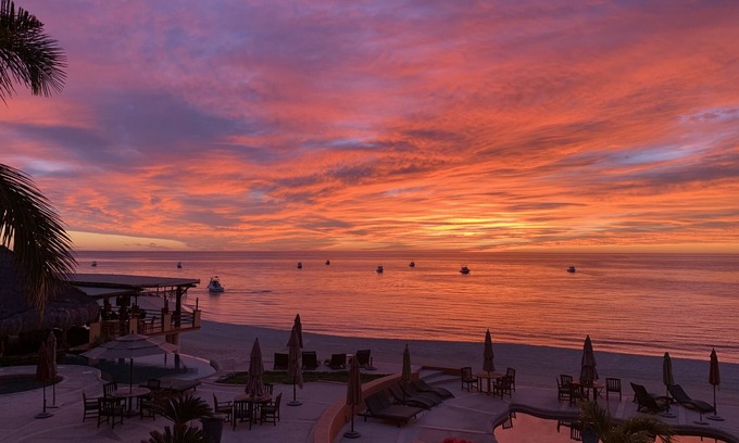 Watch the fishing boats, whales, and jumping rays from your private balcony in this luxurious condo on the white sandy beach of Los Barriles. Relax around the pool, lounge at the swim up bar, enjoy the 24 on site pickle ball courts, visit the small town's several restaurants and shops or eat at one of the two excellent restaurants on the property. You will appreciate the privacy of your end unit, away from the busy hotel and restaurant, with its balcony separated from others. The condo is located inside a guarded, gated property with 24 security for your comfort.