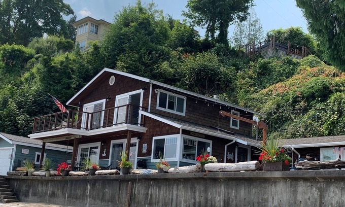 The home is located at the water's edge, on a bulkhead just steps to the sandy beach. Enjoy wildlife with frolicking seals, eagles, Orca pods and an abundance of waterfowl. At high tide, you'll feel as though you're floating in a houseboat. When the tide is out, you'll enjoy one of the finest sandy shores on the Sound. Do some beachcombing to explore tidal pools, enjoy the abundance of shells, or kayak to the local Marina for a treat. A mooring buoy (year round) and floating raft (available seasonally) is available for swimming, fishing, or for a boat or personal watercraft.