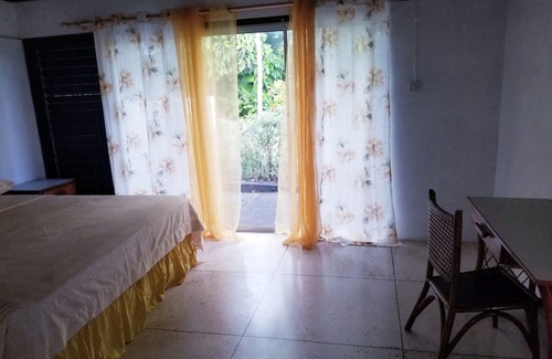 Elevated house on large property with awe-inspiring views of the ocean, small town of Arnos Vale, and Bequia island. Real privacy although in a community neighbourhood community. 2 large decks to relax undisturbed. Has a mini courtyard separating the 3 buildings which comprise the house: Building 1 is Master bedroom with en suite bathroom. Building 2 is 2 bedrooms separated by hallway, cupboards and bathroom. Yard is fully enclosed with electric gate opener. Each bedroom allows privacy in your own bedroom space with main building comprising living, dining, elevated patio and kitchen for meetups. Laundry room with washerr in downstairs section of main building.