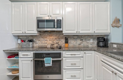 Beach Colony Resort East 12B is located on the 12th floor and boasts spectacular Gulf-front views from the spacious, private balcony. This two-bedroom, two-bath condominium accommodates up to 6 guests comfortably, with a king-sized bed in the master bedroom and a queen with twin/twin bunk beds in the guest bedroom. This will be your new happy place, as it has been recently upgraded throughout, including amenities such as a Keurig coffee maker, fireplace and rocker recliner. Carpet all removed and replaced with LVP (new pics coming). There are also new UHD televisions and Blu-ray players throughout, along with DirecTV, an Xbox 360 and Netflix capabilities.) Video games and movies provided. Upon entering, you will find the laundry room with a full-sized washer and dryer combination on your right. The guest bedroom has its own private bath with a single vanity and a tub/shower combination. The Gulf-front master bedroom leads into its own private bath with a walk-in shower, large Jacuzzi tub and a double vanity. The fully-equipped kitchen leads to the dining area and living room. Enjoy true paradise with a large balcony overlooking the Gulf, complete with a dining table, loungers and plenty of room to have your morning coffee, watch the dolphins or take in the stunning sunset views in the evening. The balcony is accessible from both the living room and the master bedroom. Soak up the sun by taking advantage chairs and boogie boards along with beach toys, for your use throughout your stay.