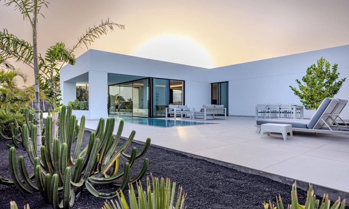 Ambiant is a contemporary designer villa inspired by classic Lanzarote style that provides unparalleled tranquillity and light-filled interior and exterior spaces. Nestled in a stunning volcanic tropical garden lined with palm trees, a 20m heated private pool, 2 terraces and a unique outdoor lounge area offer ultimate relaxation and complete privacy.